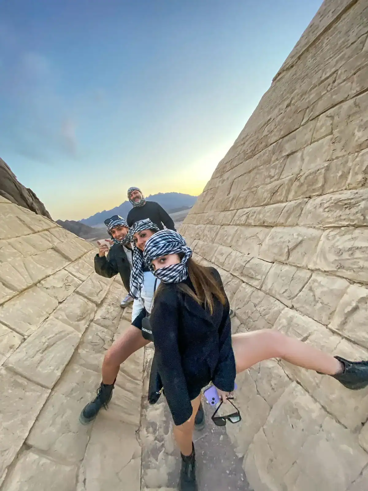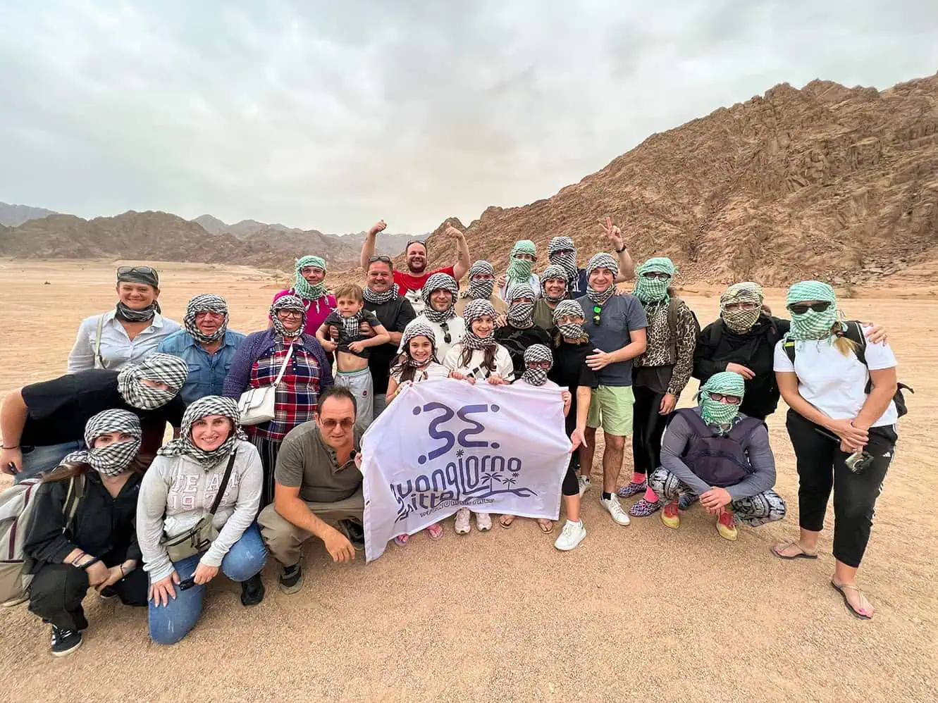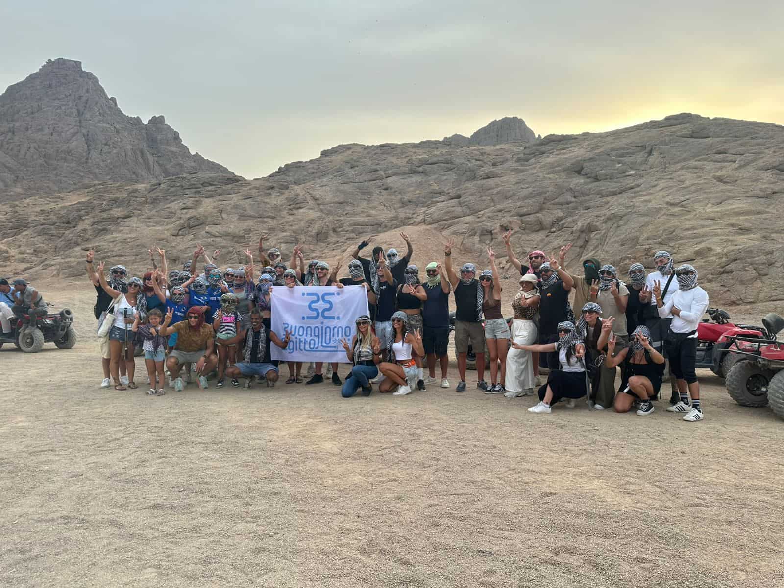 gruppo di italiani nel deserto durante la motorata a sharm el sheikh con guida italiana