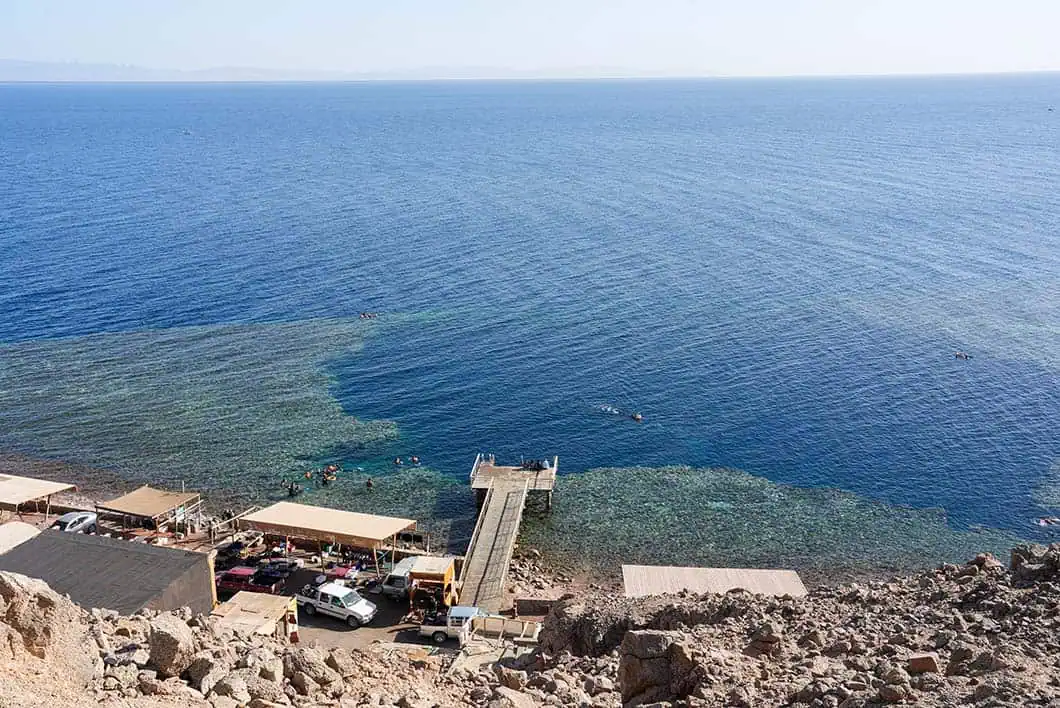 vista panoramica del blue hole con il mar rosso che lambisce le coste