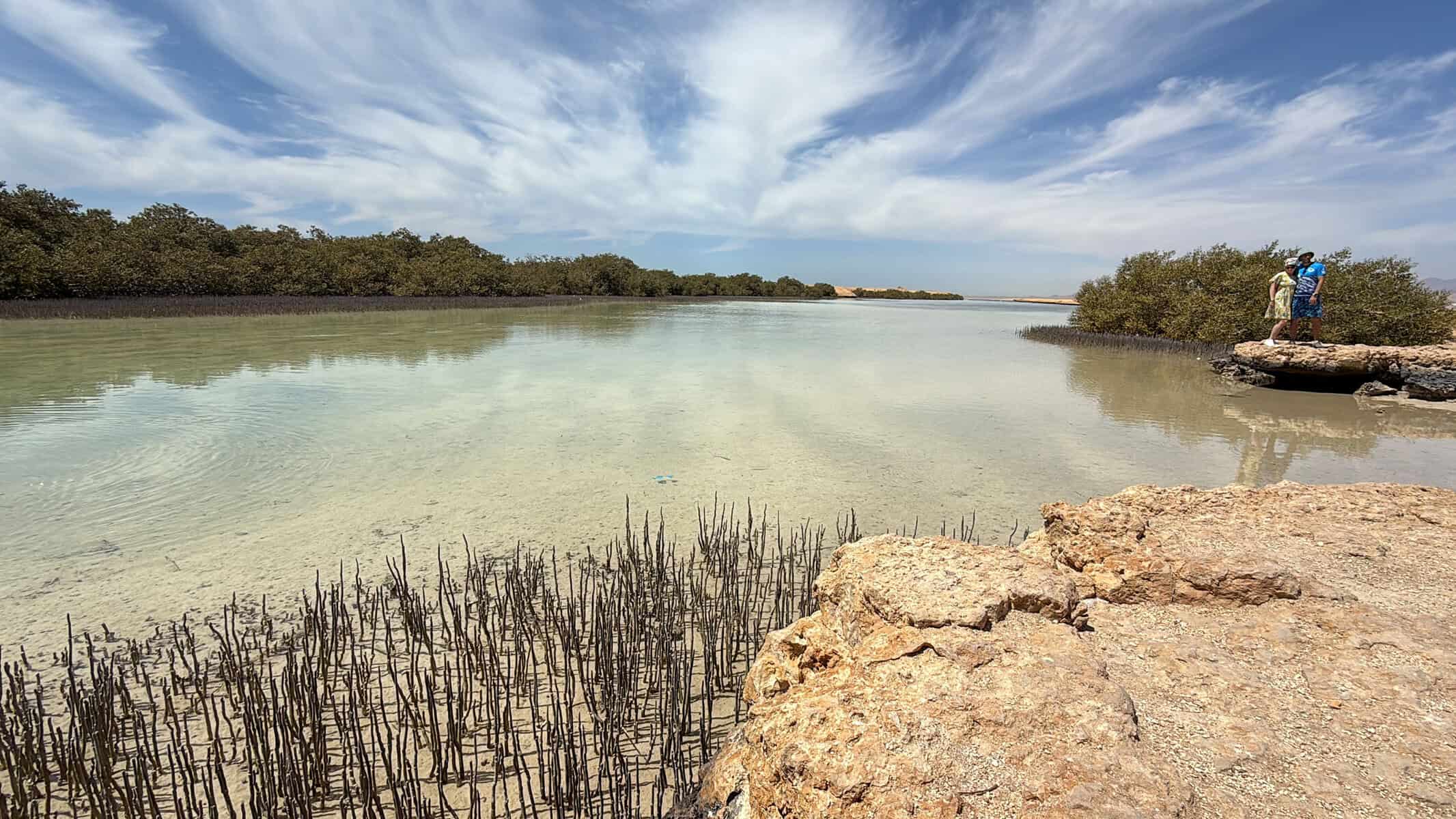 Nel cuore del Parco Nazionale di Ras Mohammed, tra deserti e scogliere a picco sul mare, si trova un ecosistema sorprendente: le mangrovie. Questi alberi, unici nel loro genere in Egitto, crescono direttamente nell’acqua salata, grazie alla loro straordinaria capacità di filtrare il sale e trattenere l’acqua dolce. Passeggiare lungo questo angolo verde nel deserto è un’esperienza affascinante. Le radici intrecciate delle mangrovie creano un paesaggio quasi surreale, riflettendosi nelle acque calme della laguna. Qui la natura è viva: tra i rami si possono spesso vedere piccoli uccelli, granchi che si muovono tra le radici e, se si è fortunati, anche pesci che nuotano tra le piante. La sosta alle mangrovie è un momento perfetto per immergersi nella tranquillità del parco, ascoltare solo il suono del vento e delle onde leggere, e apprezzare uno degli angoli più suggestivi e meno conosciuti del Sinai.