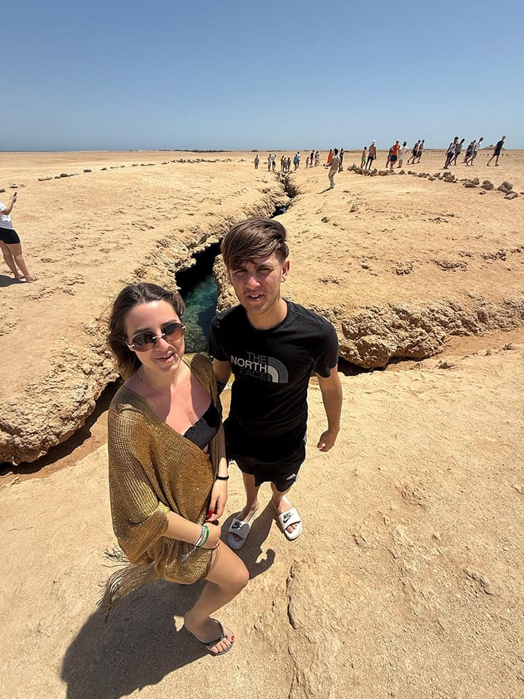 La Spaccatura nel Deserto e’ una faglia piena di acqua marina che si e’ aperta dopo un terremoto. L’ acqua del vicino lago magico filtra qui sottoterra e trovi questo incredibile buco lungo piu’ di 50 metri e profondo piu’ di 40 pieno d’ acqua