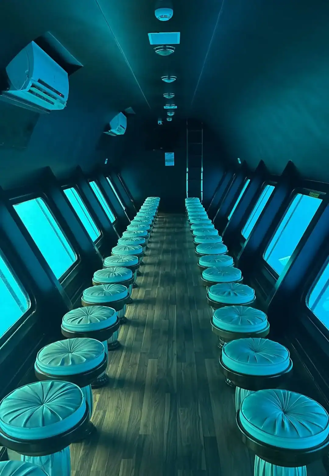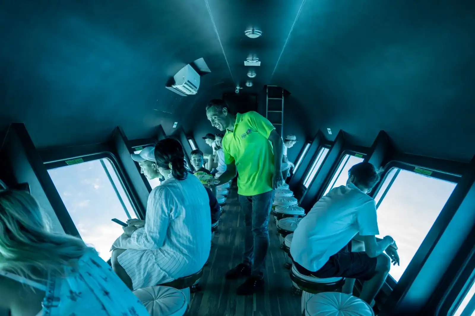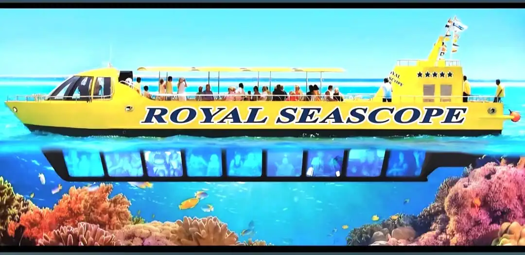 È una barca che naviga in superficie, dotata di una zona panoramica subacquea con grandi finestre che permettono di osservare il fondale e la barriera corallina restando comodamente seduti.